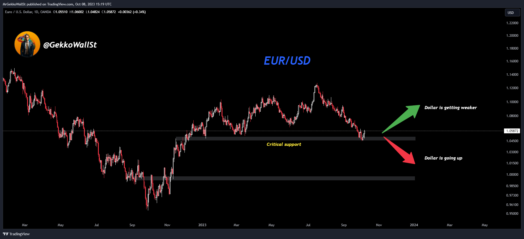 If this crucial support is lost, the trend would be for the euro to become stronger than the dollar.