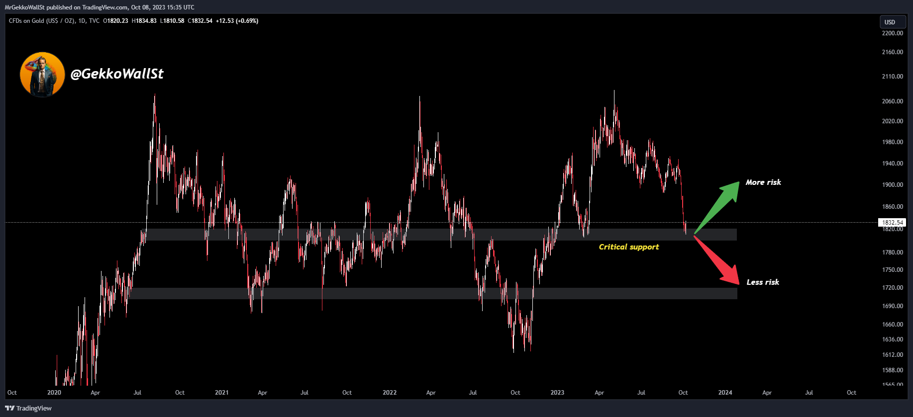 Gold has been on a downtrend since May 2023. Currently, it's also trading at a significant support level.