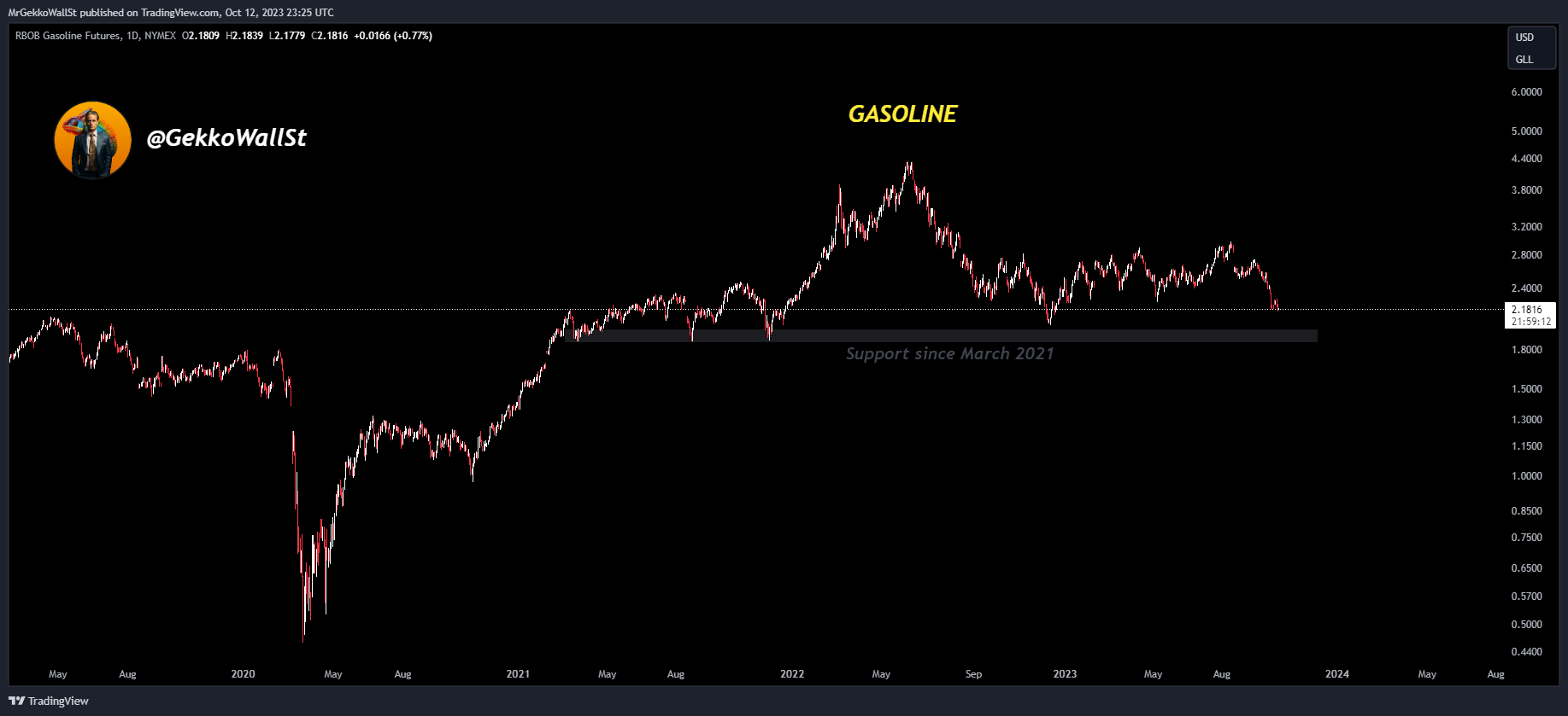 Currently, the gasoline futures market is trading at around $2.18 per gallon.